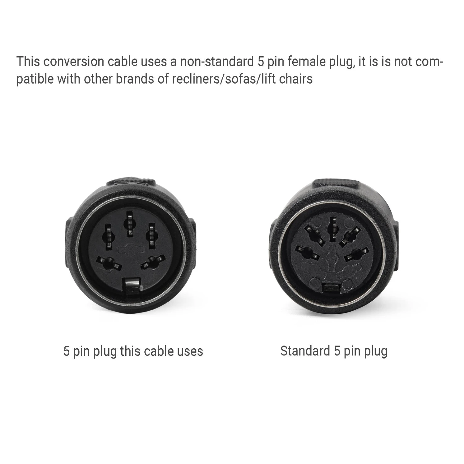 - This conversion cable is not compatible with other brands of recliners/sofas/lift chairs.