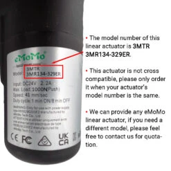 This actuator is a direct replacement for eMoMo 3MTR 3MR157-333T linear actuator. If your actuator’s model number is different, this actuator won’t be a suitable replacement.