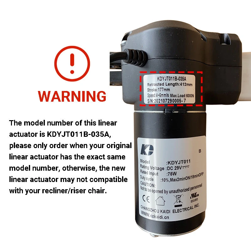 - You can use this linear actuator to replace the original one if it has the same model number KDYJT011B-035A.